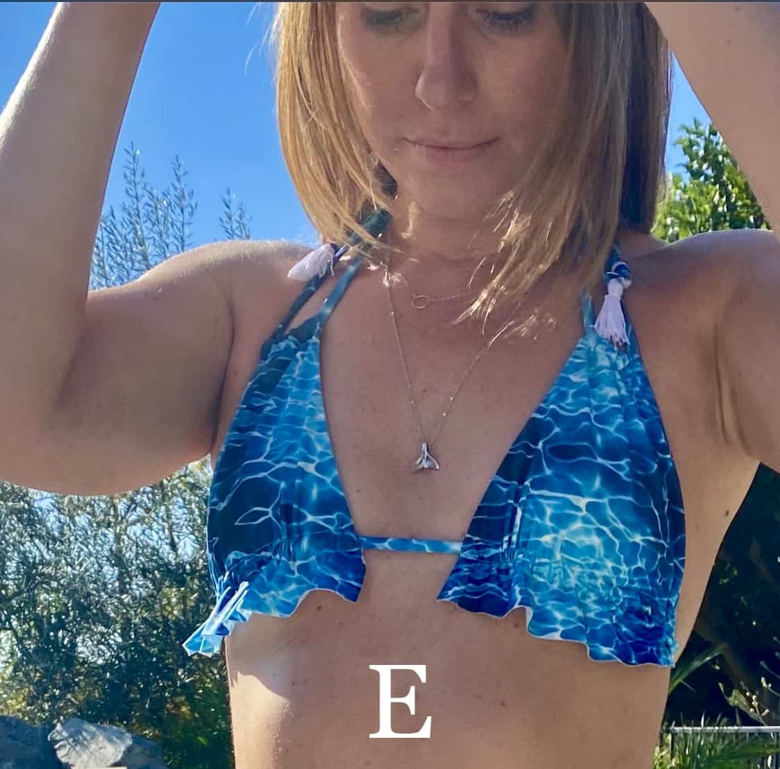 Double Spaghetti Strap Neck-Tie Triangle Top with Frill and Beaded Tassel Strings