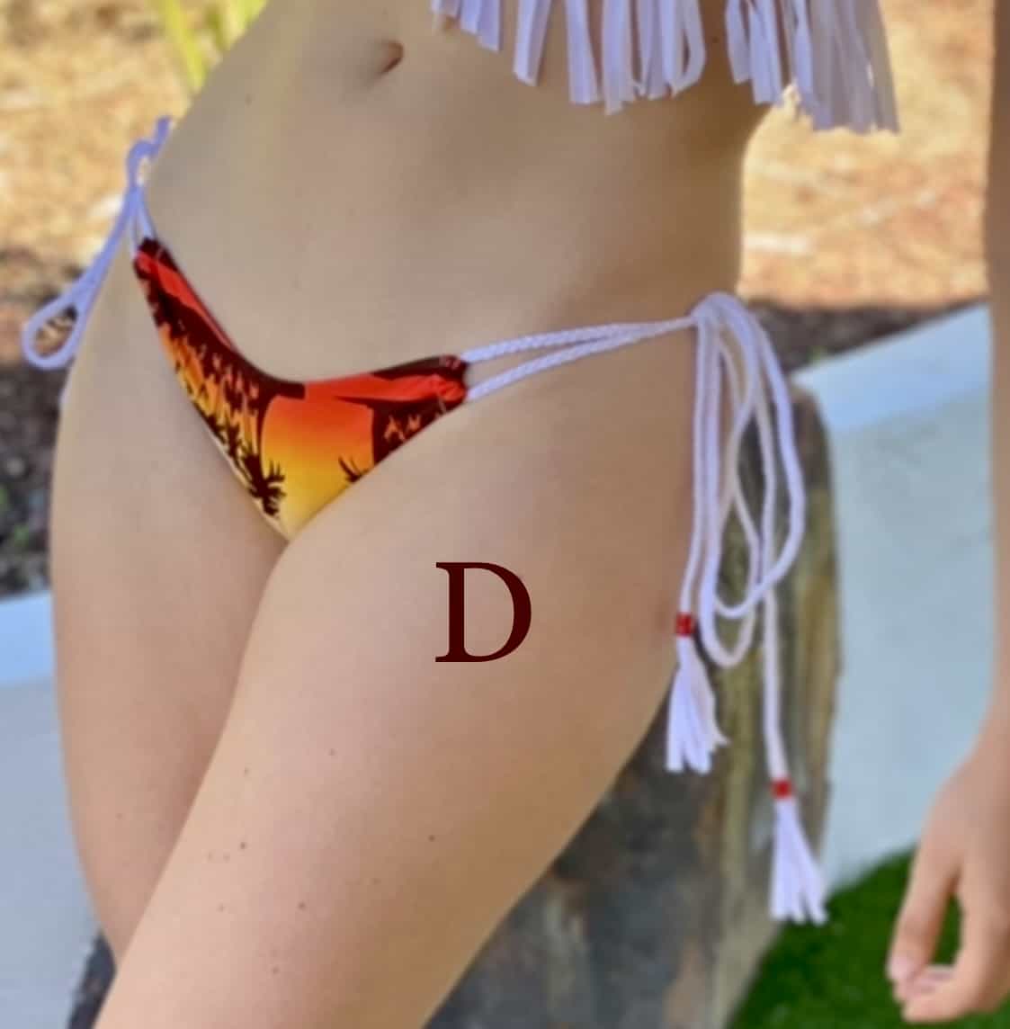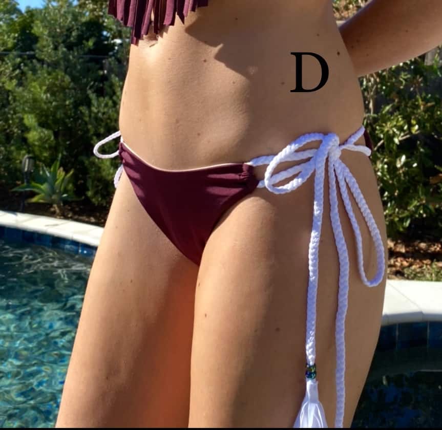 Braided Side-Tie Cheeky Bottom with Beaded Fringe and Ruched Back